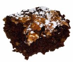 Combine 2 cups flour, 2/3 cup cocoa, 1 teaspoon baking powder, and 1 teaspoon baking soda. In a separate bowl, beat 3/4 cup oil, 1 3/4 cups sugar, and 2 teaspoons vanilla. Add 2 eggs, beating in one at a time. Alternately add dry ingredients and 1 cup water to sugar mixture. Stir in 1 1/2 cups chopped walnuts and 1 1/2 cups miniature marshmallows. Pour into greased and floured 13 x 9 inch pan, distributing the marshmallows evenly. Make sure the marshmallows are coated with cake batter so they don’t burn. Bake at 350 degrees for 30-40 minutes. (I used a glass pan.) The marshmallows will float to the top, and look and smell toasted. Check the center with a toothpick to make sure it’s done. Sprinkle with powdered sugar. Cool and enjoy!