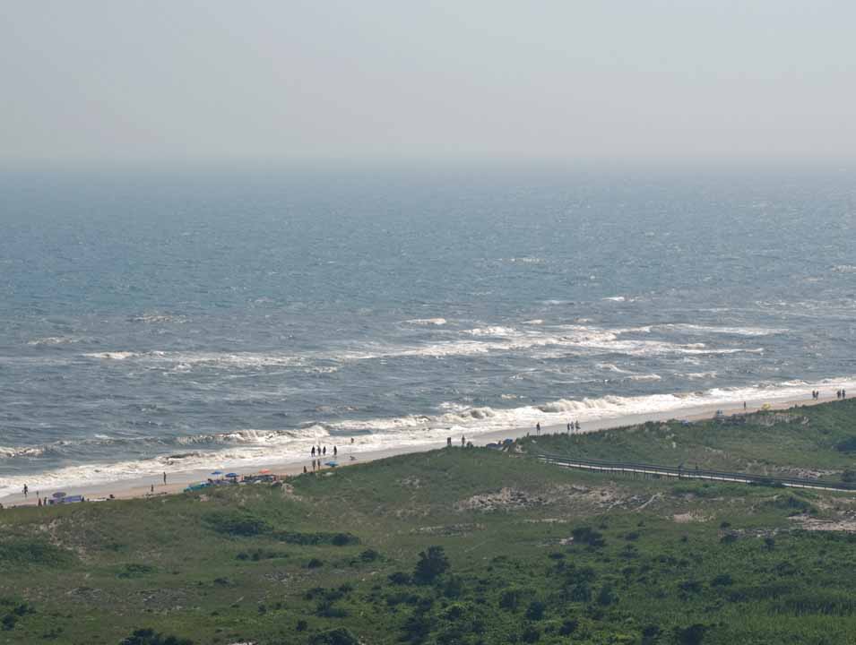 Here is the view of the beach and ocean from the top of the lighthouse at Fire Island National Seashore, adjacent to Robert Moses State Park.