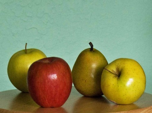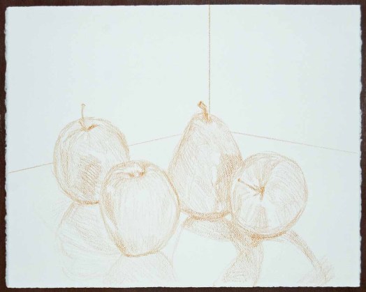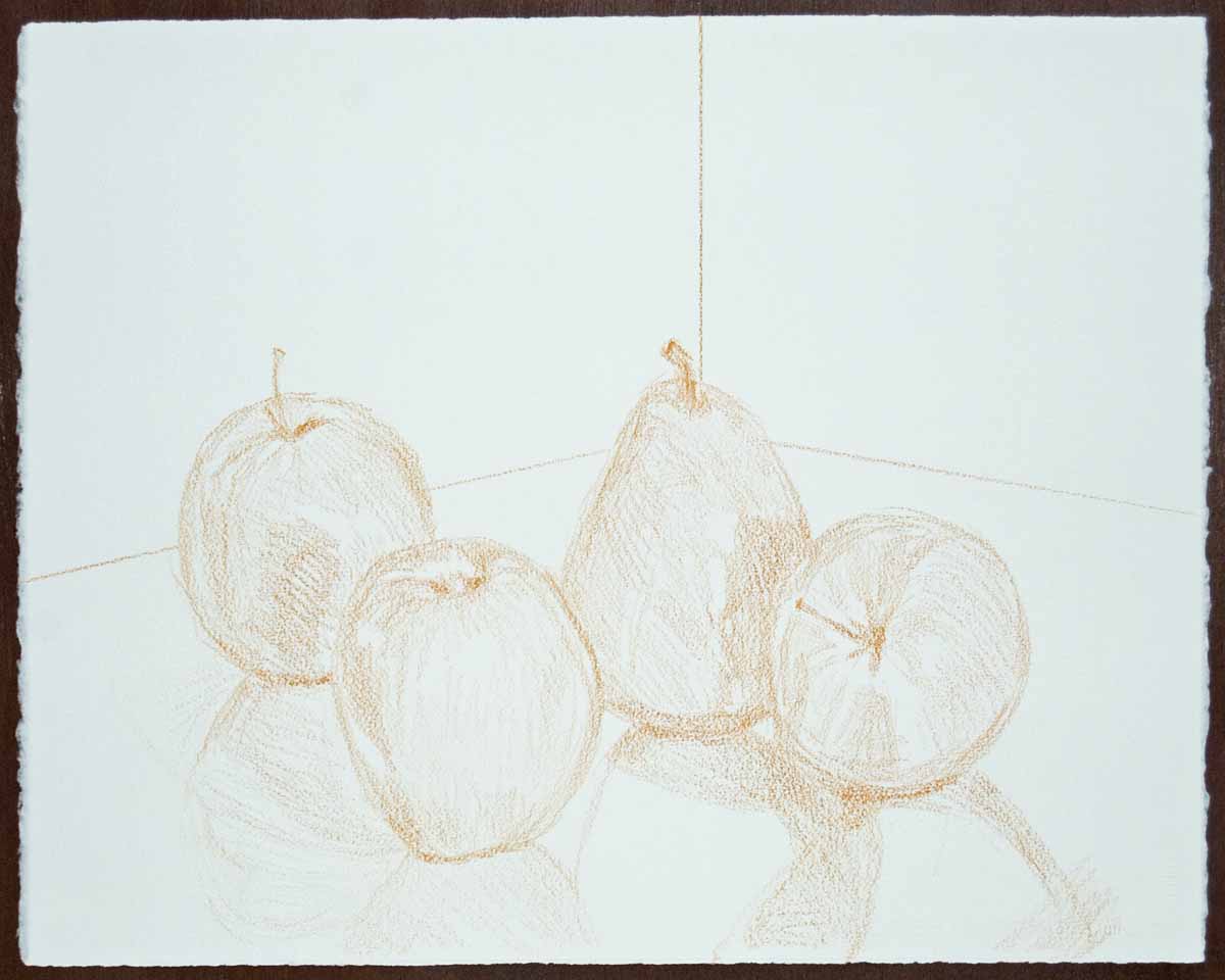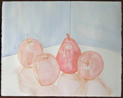 Almost three weeks ago I began a colored pencil still life of apples and a pear, with the intention of using watercolor.