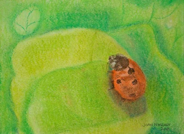 I used pastels to recreate this ladybug image. I was trying pastels for the first time since…well, a long time ago!