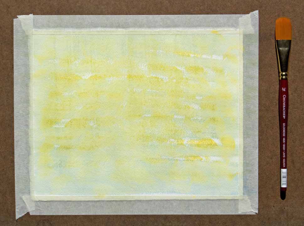 This time I used Cadmium Yellow Pale Hue for my first layer, using one of my new wash brushes. Next I added Cobalt Blue.