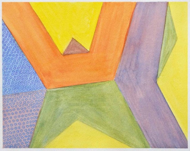 Here is the conclusion of my abstract watercolor from last week, in which I returned to painting corners.
