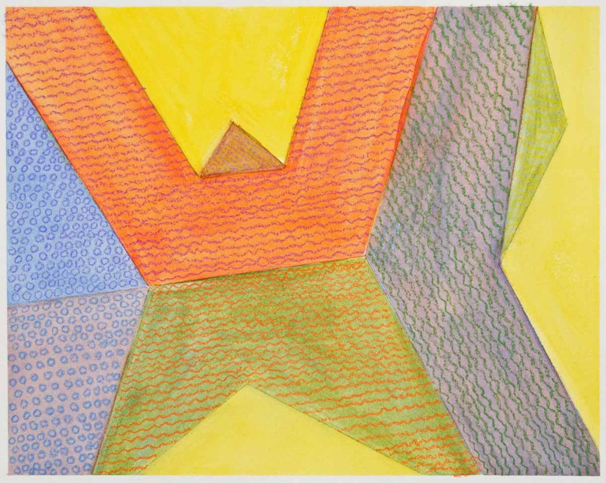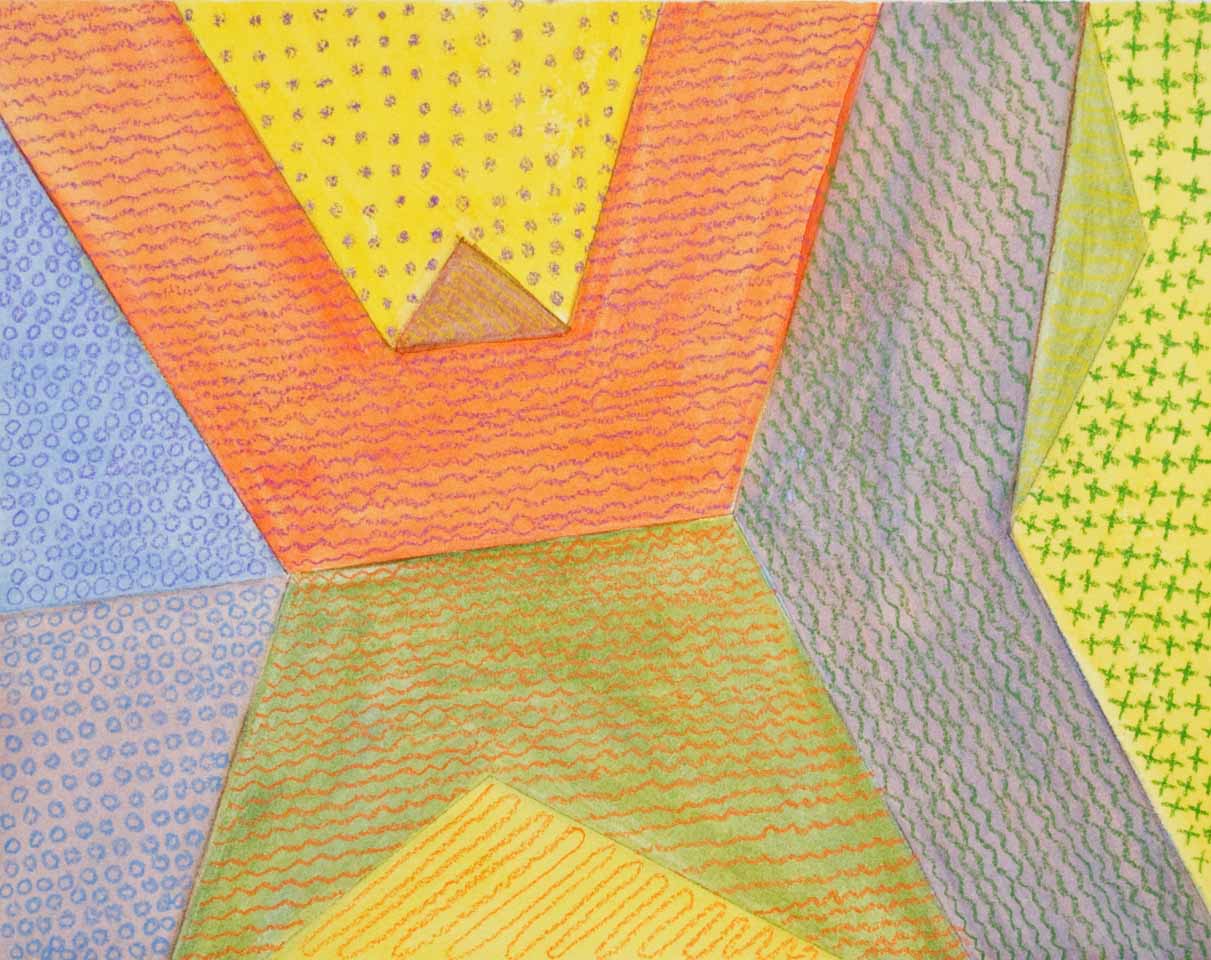 After layering primary colors to produce secondary colors, I used a variety of contrasting Prismacolor pencils to add texture.
