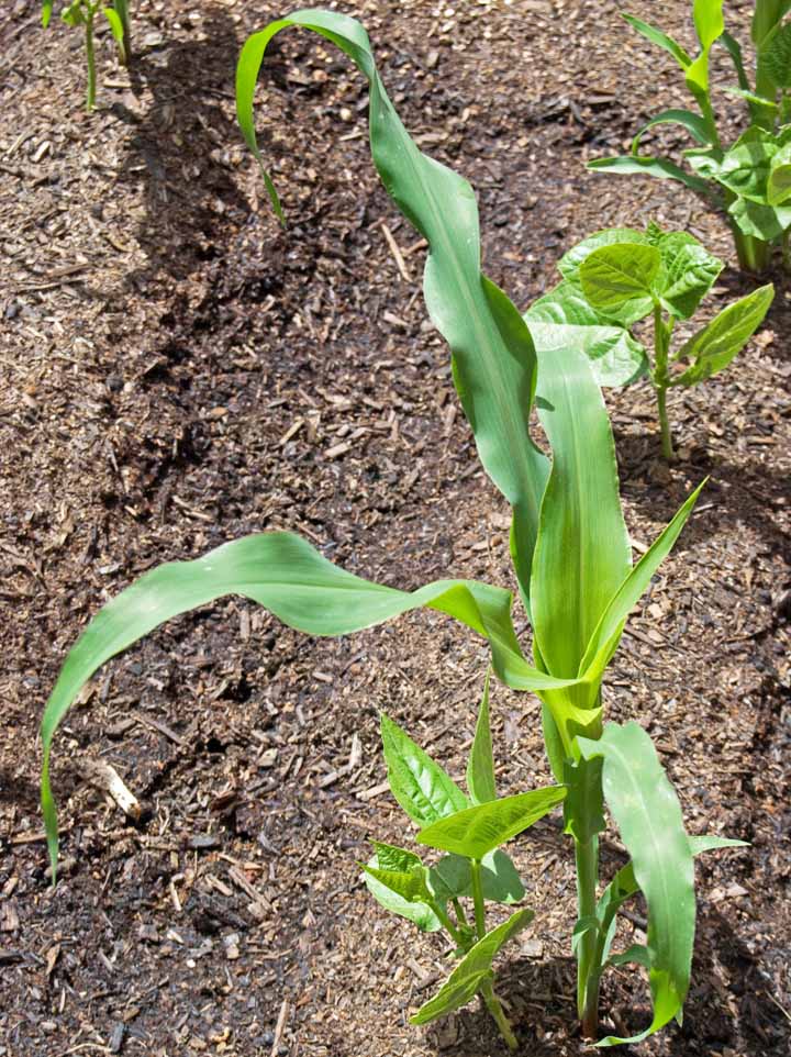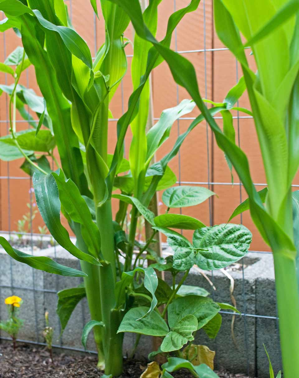 Today the bean plants are climbing up the corn, which has really taken off.
