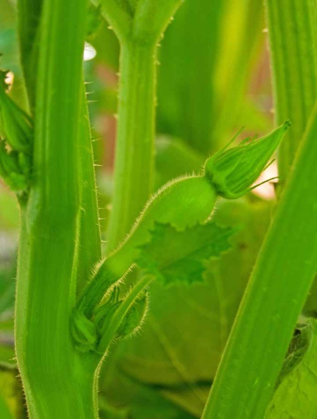 I have high hopes that this little summer squash (crookneck) will grow to maturity.
