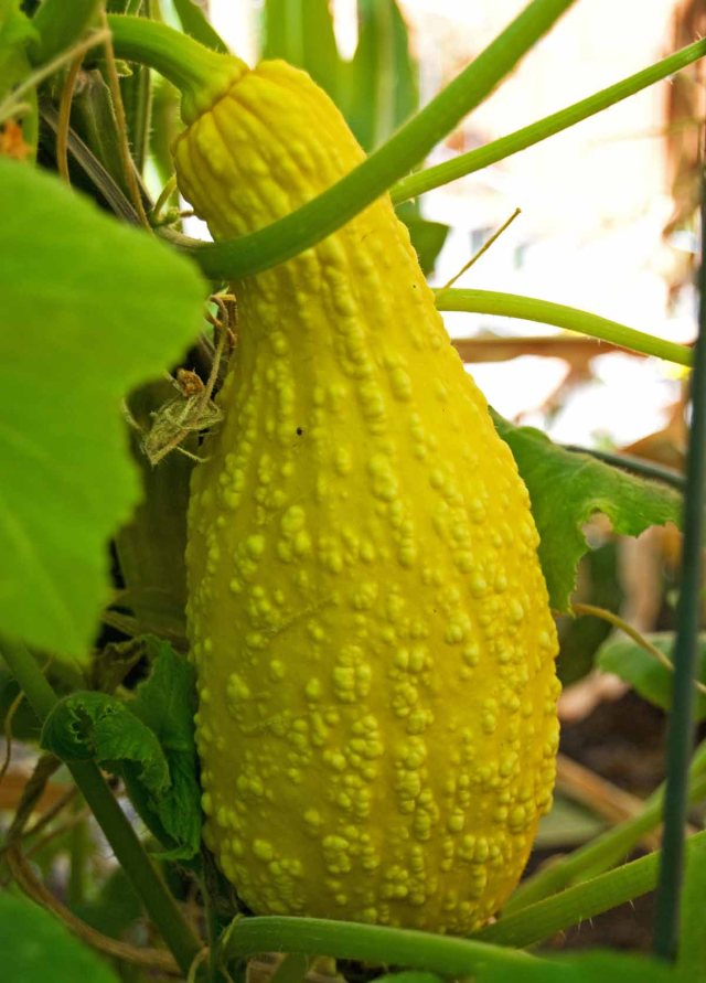 This yellow squash looks like a gourd! I’m wondering what’s inside…