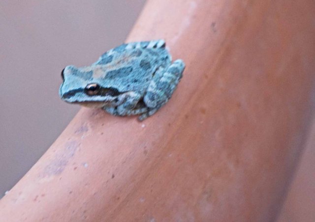 I love tree frogs. They are so cool. It hung out for a while, then headed on its way. This was my second amphibian experience so far this month. Not bad.