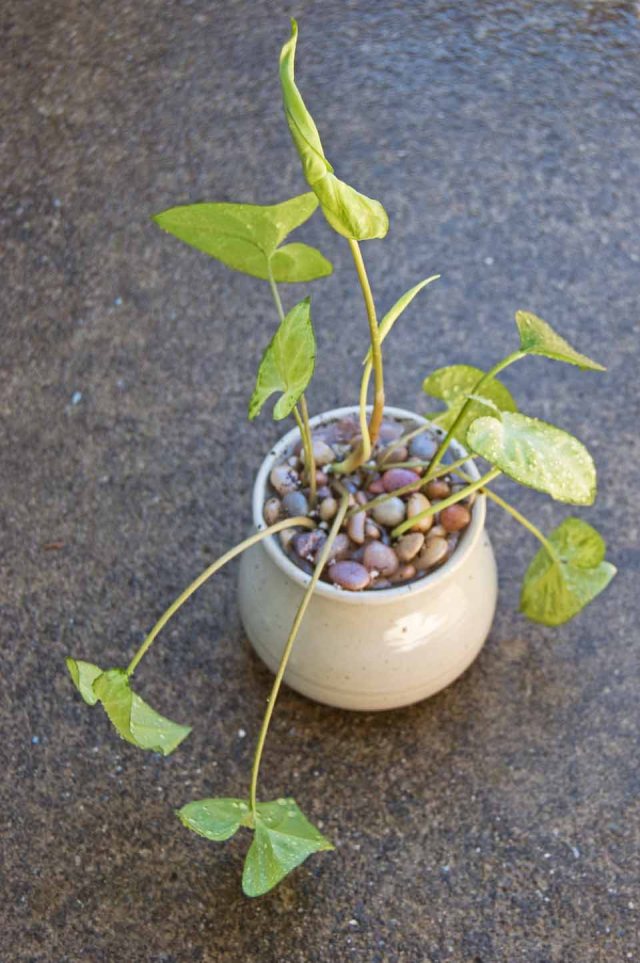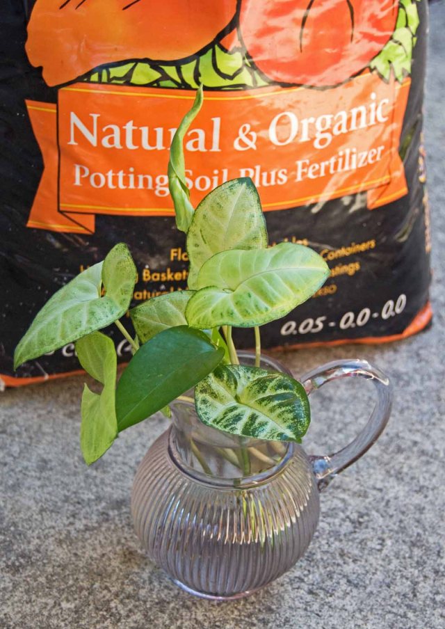 I picked up a little vase that was just the right size to turn into a planter for some philodendrons that I had rooted.
