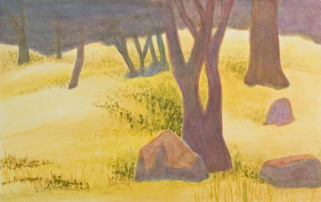When I was younger, I was obsessed with drawing trees. In honor of my youthful hobby, and the fact that I am surrounded by an oak woodland, I have embarked on a new project. I spent the last couple of days trying to capture the light in the surrounding trees at different times of the day.