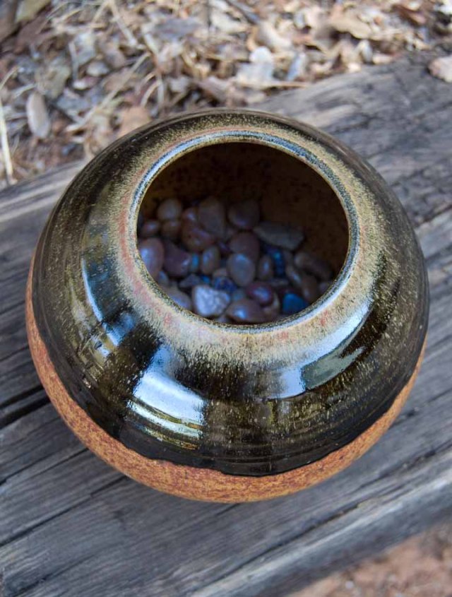 Four dollars was a pretty decent bargain for this rustic piece of pottery. I put some aquarium gravel in the bottom to provide drainage.