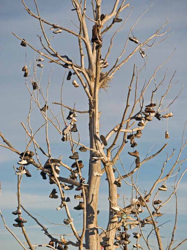 One of the highlights of our recent road trip was this “shoe tree” just west of Hinckley, Utah, on Highway 50.