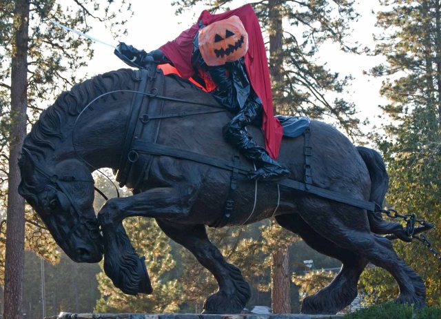 This horseman lost his head over the Halloween celebration at the Nevada County Fairgrounds in Grass Valley, California.