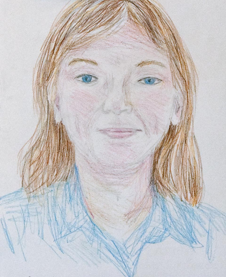 My boldness continues as I embark on a portrait marathon. Yesterday I drew my daughter Emily, and today I sketched myself. First I drew from an old black and white photo dated 1961 (oh!). The result looked nothing like me, and was so dreadful that I can’t bring myself to include it here. Next I drew myself from a photo taken last fall. It’s a bit crooked here and there, but that makes it look more realistic, right? I have used colored pencils for this drawing.