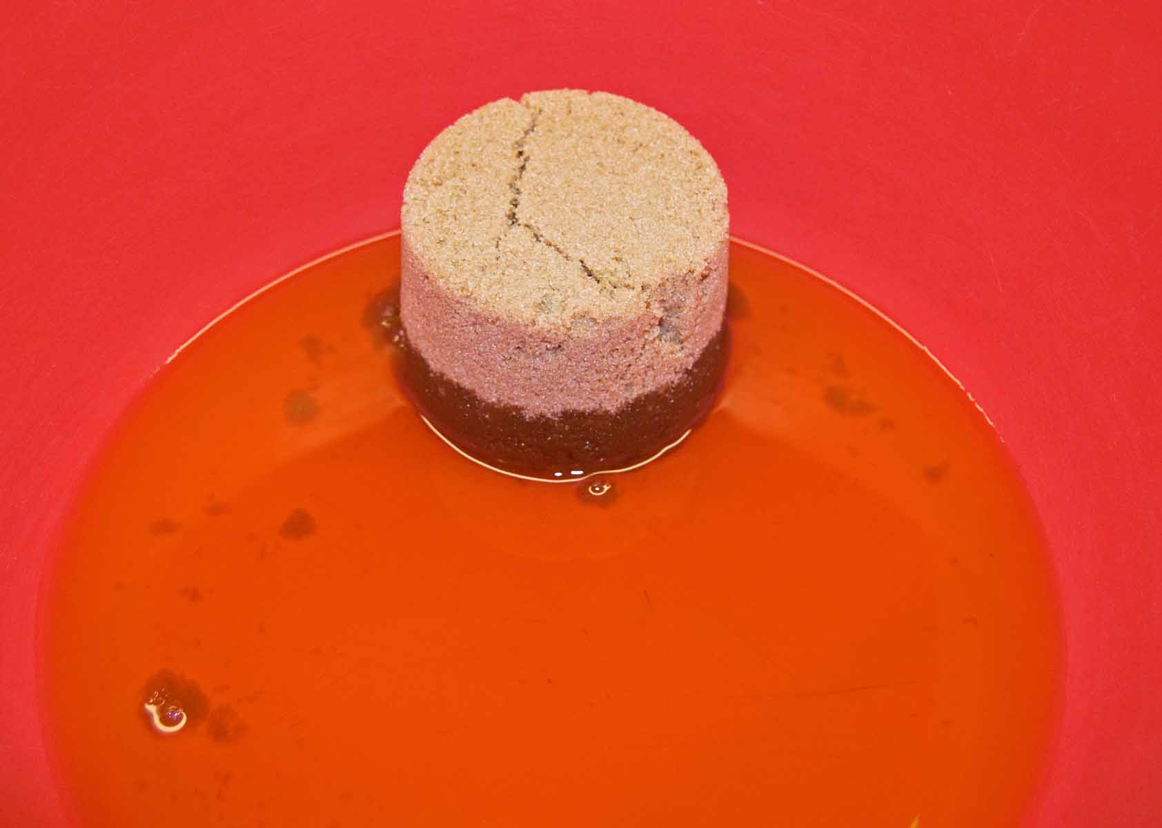 Here is what happened when I placed a smaller piece of glass on top of a roll of packing tape, and then added a blob of water. Interesting, but not exactly what I was expecting.